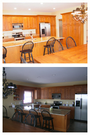 The Second Floor Plan is designed with two extra large bedrooms. With ample closet space and windows, these rooms offer spacious accommodations. To continue Stone Lodge's ambience, the second floor balcony is fashioned with an Adirondack-style log railing. Carpeting throughout the second floor level adds to the home's warmth and comfort. In addition to the standard plan, an optional additional bathroom can be added to the second floor. This additional bathroom will convert both second floor bedrooms into two large independent secondary master bedroom suites with private baths.